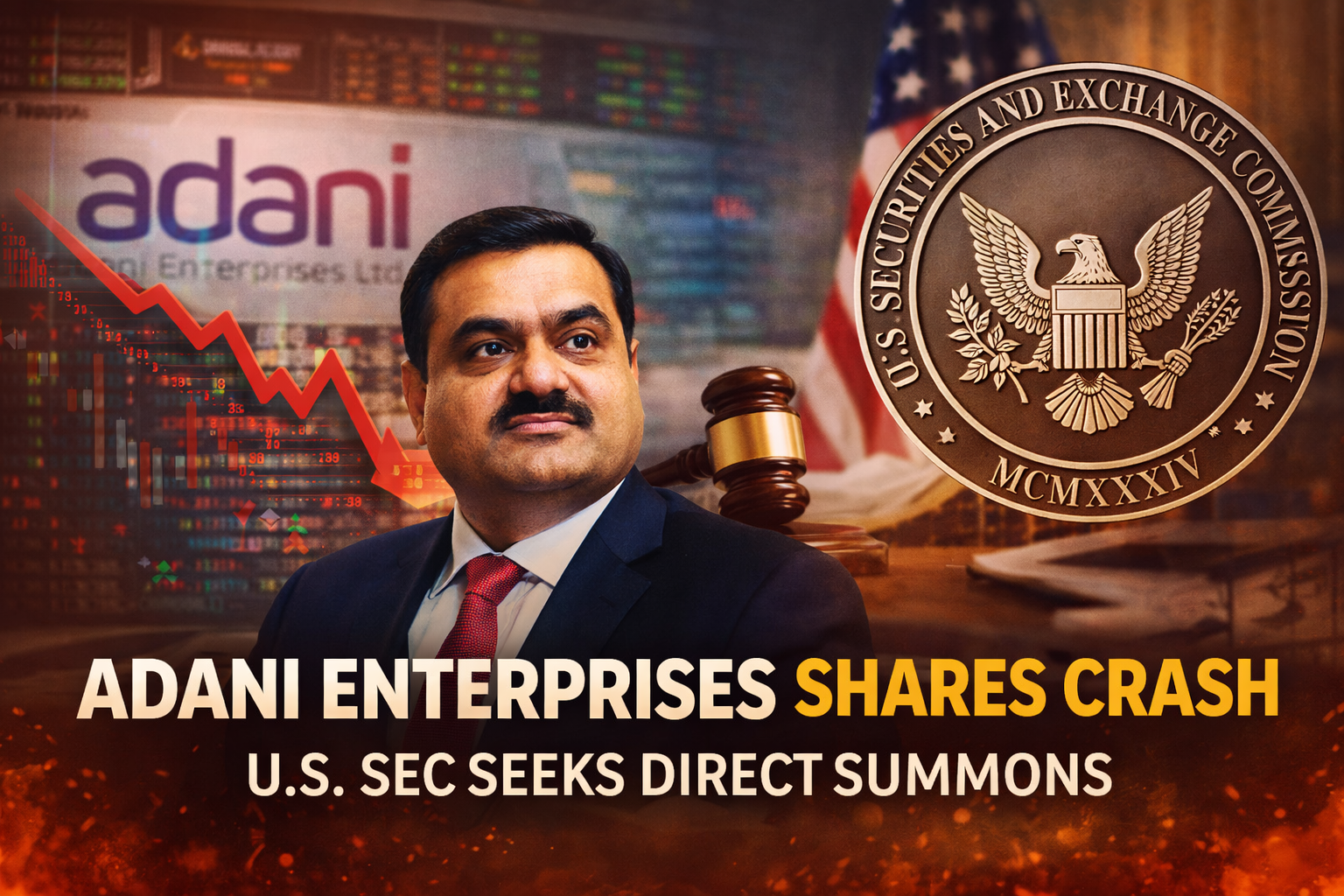 Adani Enterprises stocks came under heavy pressure after the U.S. Securities and Exchange Commission moved to serve direct summons, escalating global regulatory scrutiny.