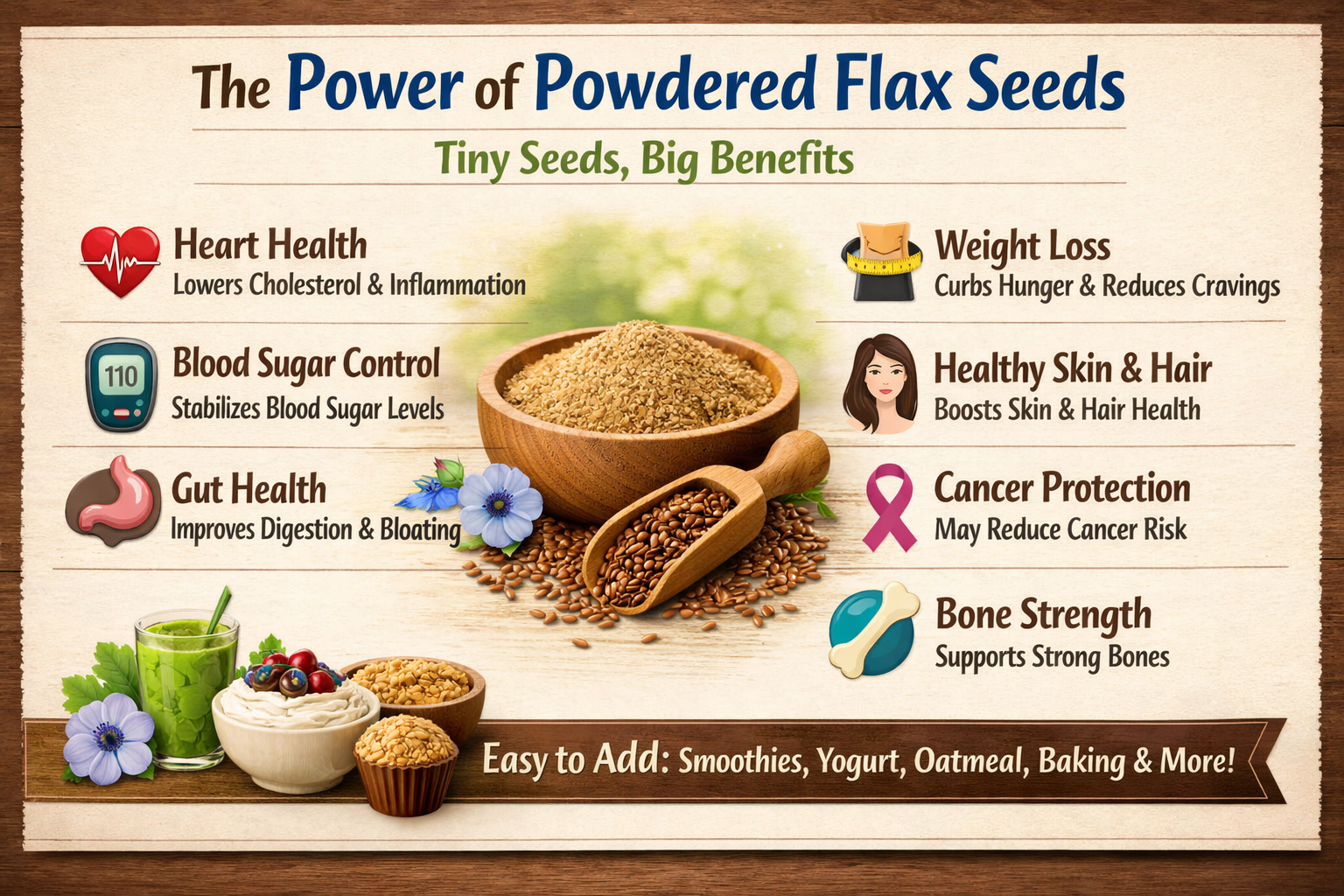 Switching from whole flax seeds to powdered flax seeds is a small change with massive benefits. From heart health and blood sugar control to digestion, weight management, skin, hair, bone health, and even cancer prevention, this tiny superfood packs a punch.