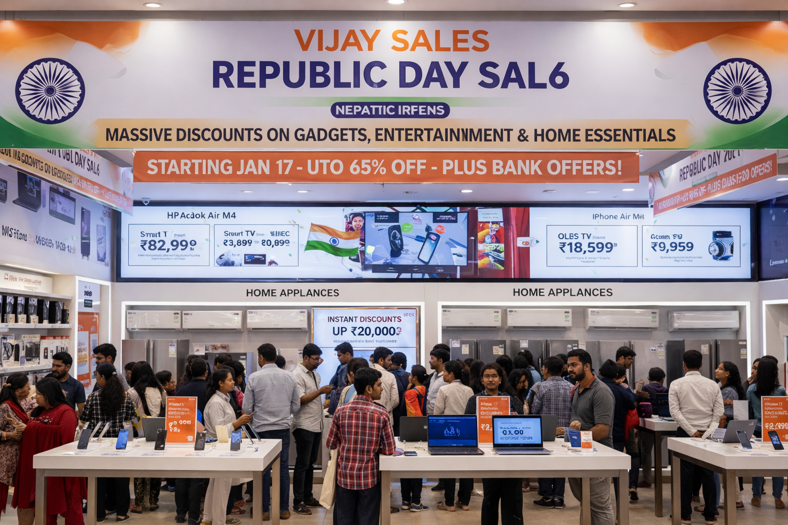 Starting January 17, 2026, Vijay Sales—one of India’s most trusted and leading electronics retailers—has officially announced its much-anticipated Republic Day Sale. The event promises heavy discounts, limited-time offers, and exclusive bank deals across a wide range of categories.